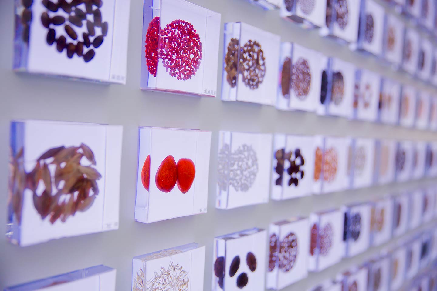 九丰种子墙它是由1152个亚克力块组成,展示了1152种植物种子,它们大小不同、形状各异,集中展示了自然世界的丰富多彩和生物多样性。